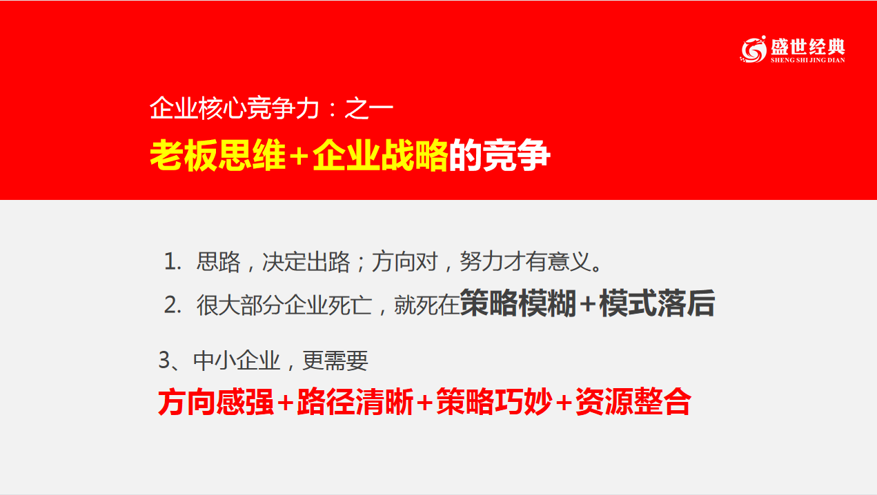 在中國,很多的企業(yè)普遍缺乏品牌戰(zhàn)略規(guī)劃,品牌沒有戰(zhàn)略性的指引,走一步算一步的在碰運(yùn)氣;而那些有戰(zhàn)略規(guī)劃的品牌,有底氣、有信心,所有的動(dòng)作都是在完成戰(zhàn)略目標(biāo)。在一段時(shí)間內(nèi)超越,實(shí)現(xiàn)品牌勝利,所以品牌戰(zhàn)略規(guī)劃尤為重要。那么應(yīng)該如何制定有效的品牌戰(zhàn)略呢,盛世經(jīng)典為您解答!